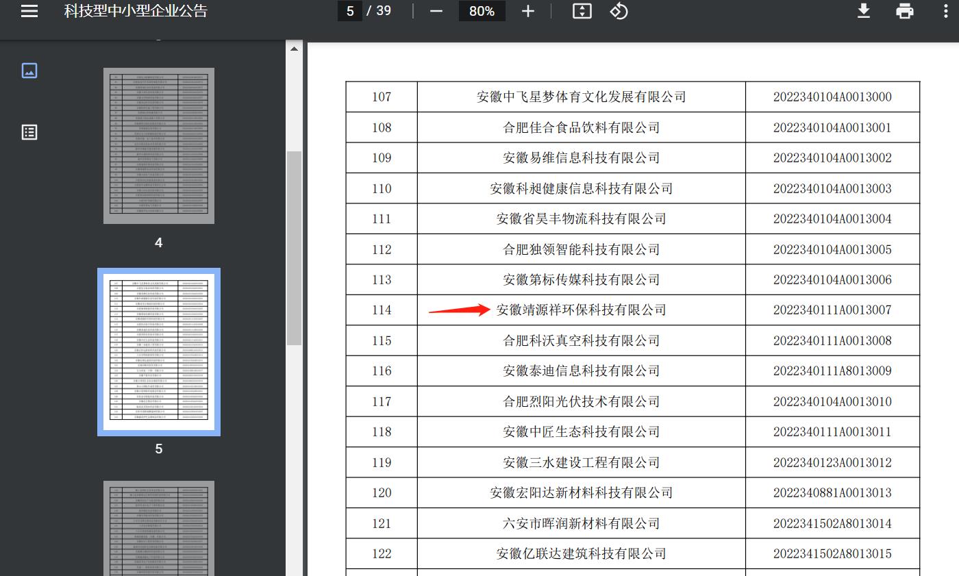 安徽靖源祥環保科技有限公司,位列合肥市科技科技廳科技型中小企業公示表格114行。詳見合肥科技廳網址: http://kjt.ah.gov.cn/kjzx/tzgg/121242761.html
